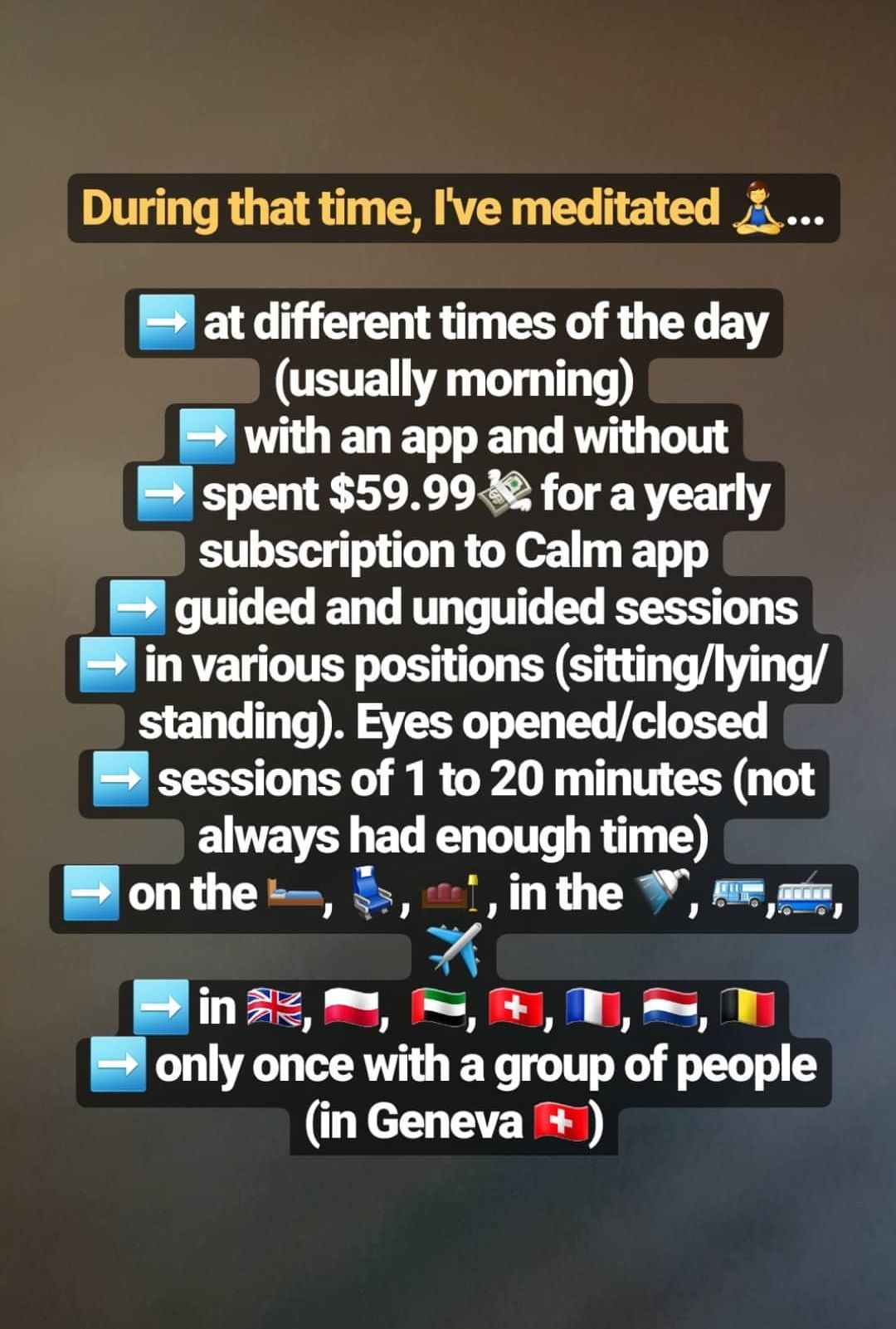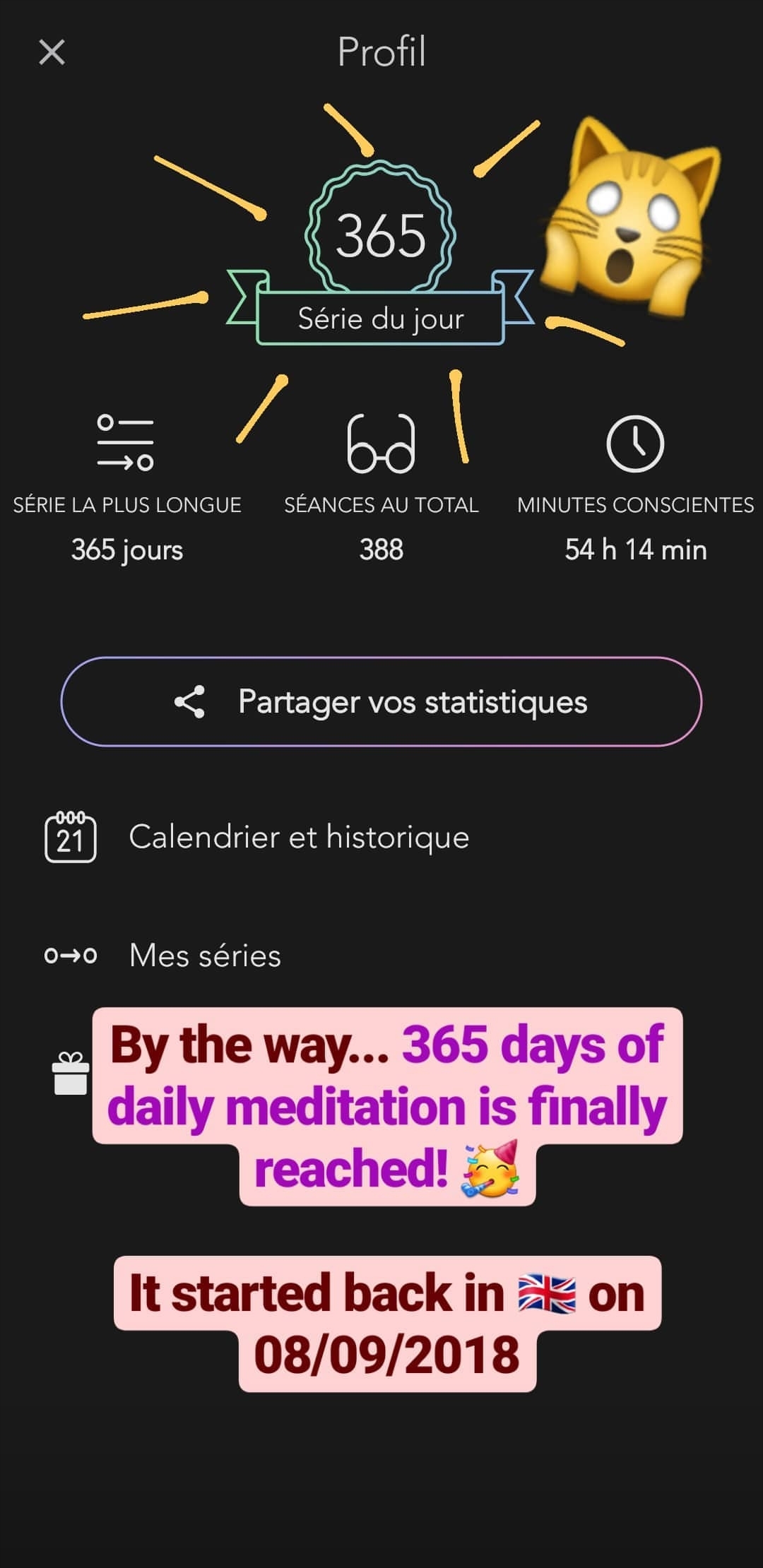 - 🧘 Achieved 365 days of meditation, which originated back in the UK on 08/09/2018