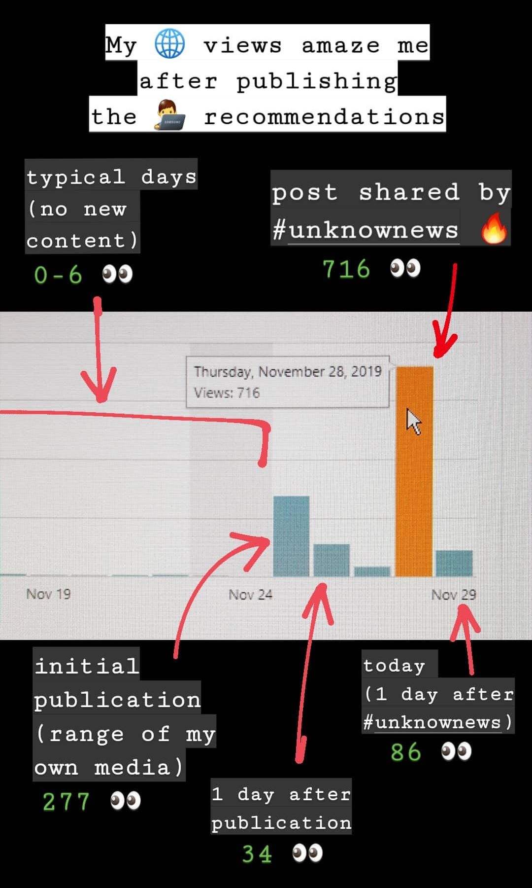 - it managed to appear in #unknownews, which brought a lot of visits in the first 5 days from all around the world